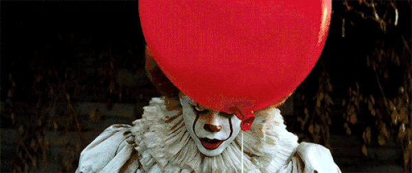 恐怖元素:摇晃的红气球,小丑嘴边的殷红