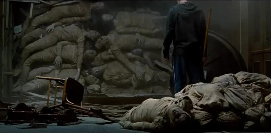 随着木板破裂的声响,成堆的死尸从墙体中滑落下来,每一具尸体身上都刻满了符号,与幻觉中看到的一模一样。
