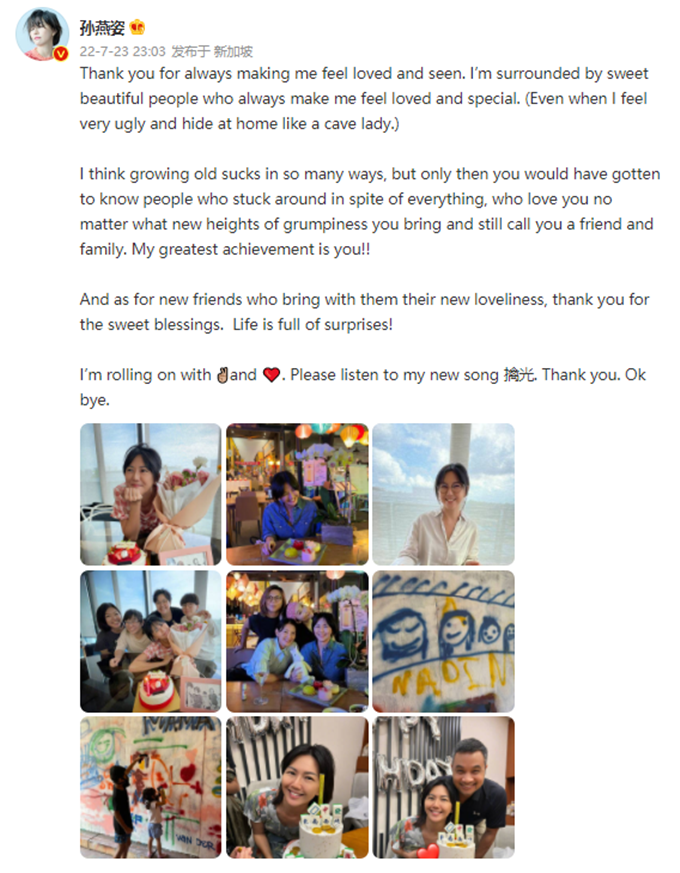 孙燕姿生日与老公罕秀恩爱!44岁皮肤细腻似少女,子女长高不少